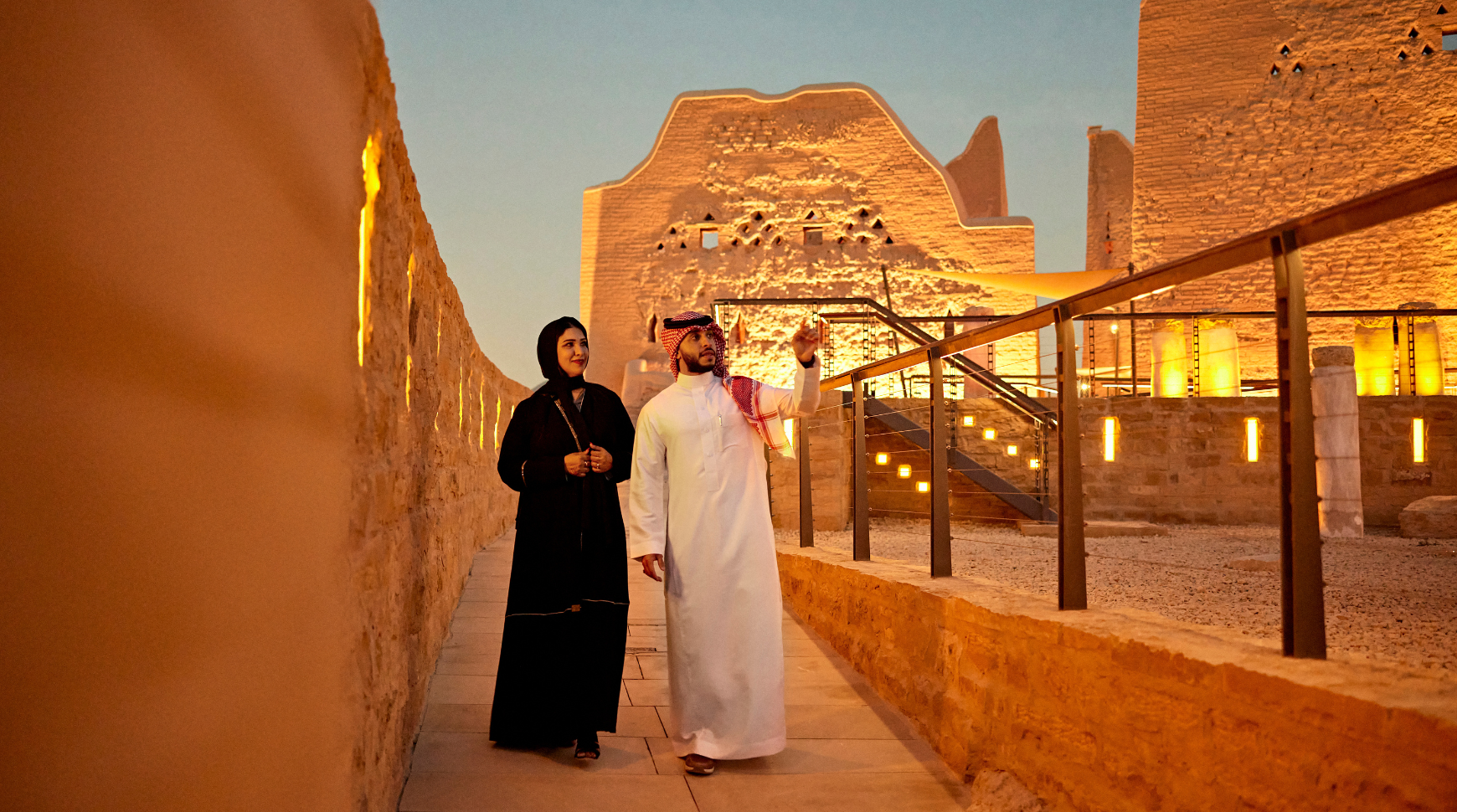 As the sunset paints the sky, head to the Diplomatic Quarter (DQ) for a tranquil stroll or a ride by car up the hills overlooking Wadi Hanifah, a perfect spot to unwind and capture stunning photos.