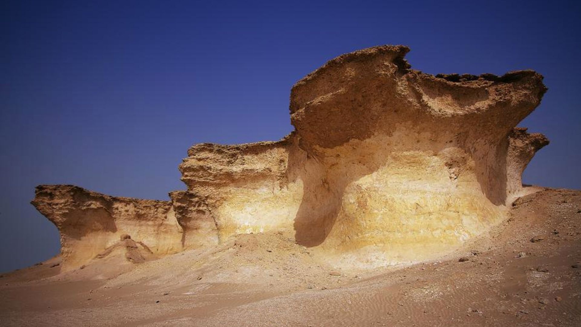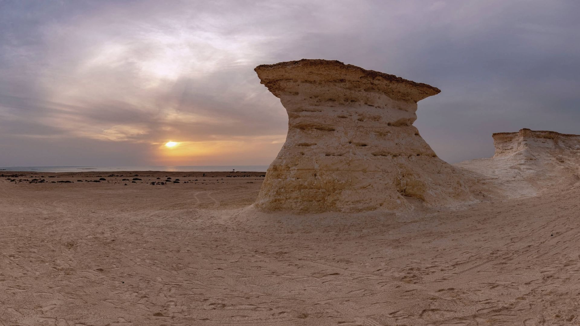 The Zekreet peninsula in northern Qatar consists of distinctive limestone rock formations and spectacular sedimentary rocks. These formations rise from the desert like towering pillars, shaped by centuries of wind and weather. The environment feels almost sculpted, offering endless opportunities for photography and exploration.
